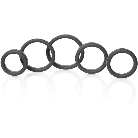 5 cock-rings 100% silicone de qualité médicale qui offrent un ajustement parfait à la base du pénis.